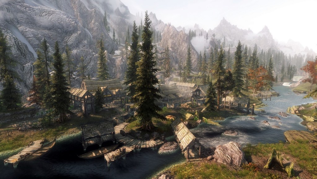 I was looking through my old PS4 games, and had a nostalgic wander around the forests and valleys of Skyrim. There’s a specific tone to the imagery and graphics, and as a long time fan, I started to think about recreating it as a film recipe.