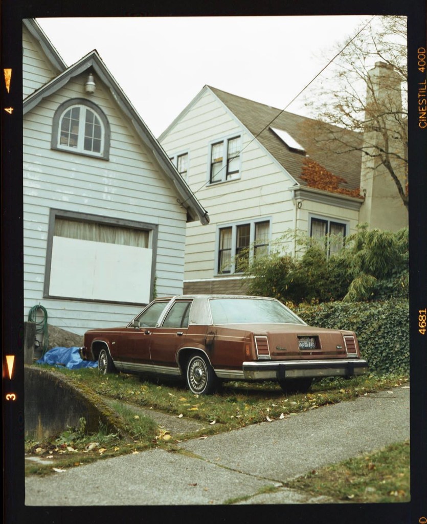 Today, I saw a simple set of images of a decaying family car by @douglasrhall parked on the lawn of what looks to me like an urban neighbourhood home typical of American industrial cities.